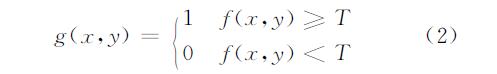 設(shè)輸入圖像為f(x,y),輸出圖像為g(x,y),用得到的分割閾值T對(duì)圖2(a)進(jìn)行處理,得到圖2