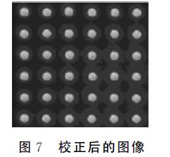 式中(xi,yi)為燈點(diǎn)區(qū)域的重心坐標(biāo),也就是相對(duì)應(yīng)LED燈點(diǎn)的中心位置坐標(biāo);燈點(diǎn)區(qū)域的大小為M×N,M、N分別為燈點(diǎn)區(qū)域?qū)挾群透叨确较蛏系南袼貍€(gè)數(shù);(xmn,ymn)為燈點(diǎn)區(qū)域內(nèi)圖像像素(m,n)的坐標(biāo),m、n分別為該圖像像素在該燈點(diǎn)區(qū)域內(nèi)所處的行和列;pmn為燈點(diǎn)區(qū)域內(nèi)該圖像像素(m,n)的二值化后的值。如圖2(c)所示,該方法能夠確定各個(gè)LED燈點(diǎn)的位置,并且由于使用了閾值分割的方法,能有效地避免燈點(diǎn)之間的相互干擾,使計(jì)算出的燈點(diǎn)的位置更加精確。