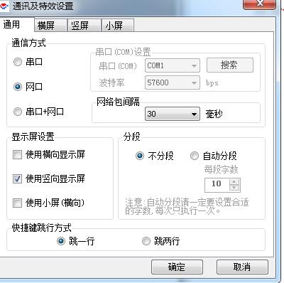 (3)回到圖3-2界面,再點較上面設(shè)置----通訊及特效設(shè)置,只勾豎屏、網(wǎng)口,不分段,跳一項