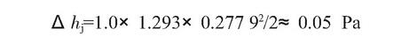 (5)出口阻力參考《實(shí)用供熱空調(diào)空調(diào)設(shè)計(jì)手冊(cè)》公式(8.3-13),得式(9):