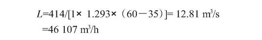 式中:L———通風(fēng)量,取46 107 m3/h,式(2)的計(jì)算值