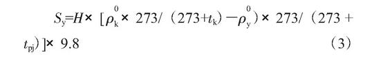 (1)空腔抽力Sy參考《鍋爐房實(shí)用設(shè)計(jì)手冊(cè)》公式(3-13),得式(3):