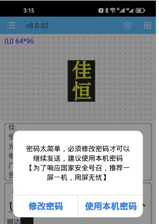 三、恢復(fù)出廠設(shè)置后,手機(jī)設(shè)置里連接RHX開頭的WiFi,根據(jù)實(shí)際重新設(shè)置(原修改屏的同一部手機(jī)操作可以不用再設(shè)置),編輯內(nèi)容發(fā)送時(shí)會(huì)提示密碼太簡單……。此時(shí)要點(diǎn)修改密碼,重新設(shè)置密碼,并記住密碼。否者其他手機(jī)無法尋機(jī)、回讀和發(fā)送。當(dāng)然也可以在手機(jī)APP界面點(diǎn)右上角齒輪查看、修改控制卡密碼。將密碼告訴需要修改顯示屏內(nèi)容的人。